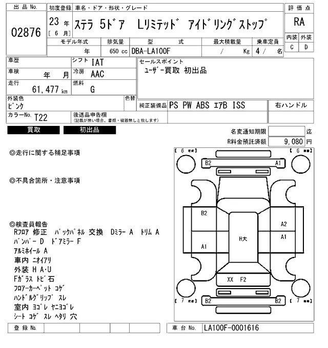Subaru STELLA с аукциона Японии ARAI Bayside лот № 2876