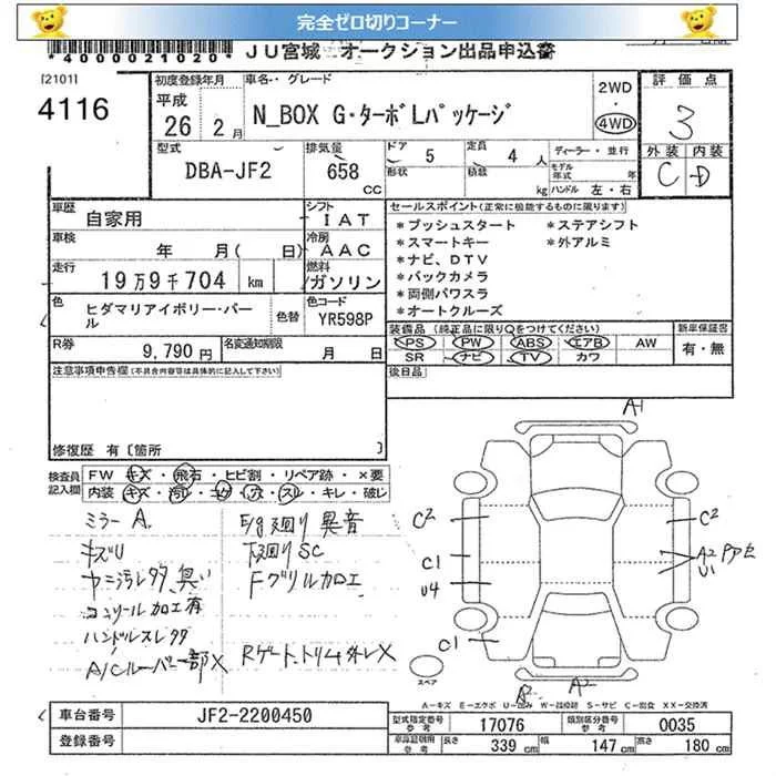 Honda N BOX с аукциона Японии JU Miyagi лот № 4116