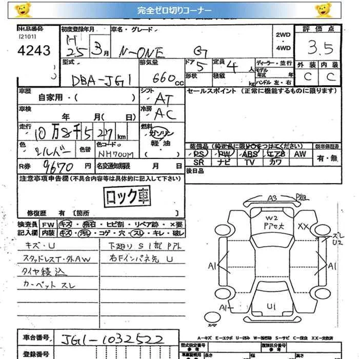Honda N ONE с аукциона Японии JU Miyagi лот № 4243
