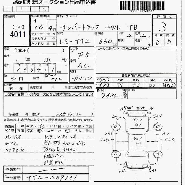 Subaru SAMBAR с аукциона Японии JU Fukuoka лот № 4011