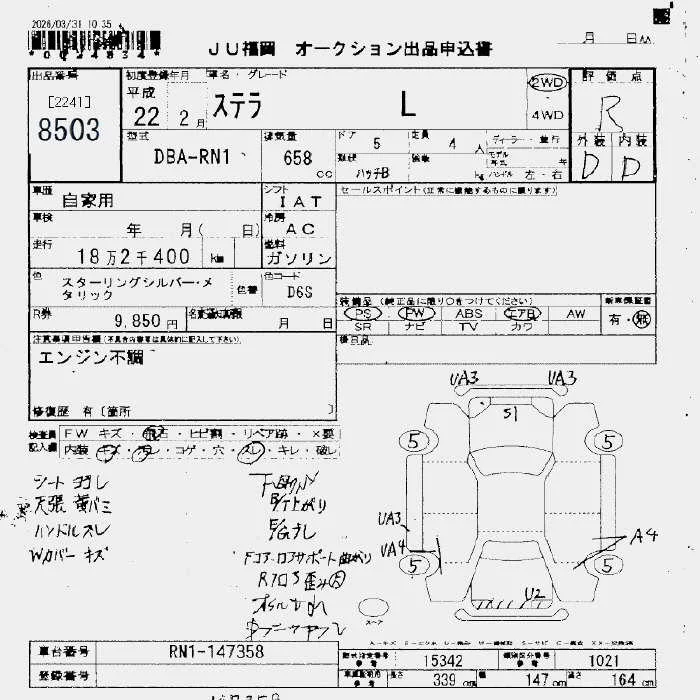 Subaru STELLA с аукциона Японии JU Fukuoka лот № 8503