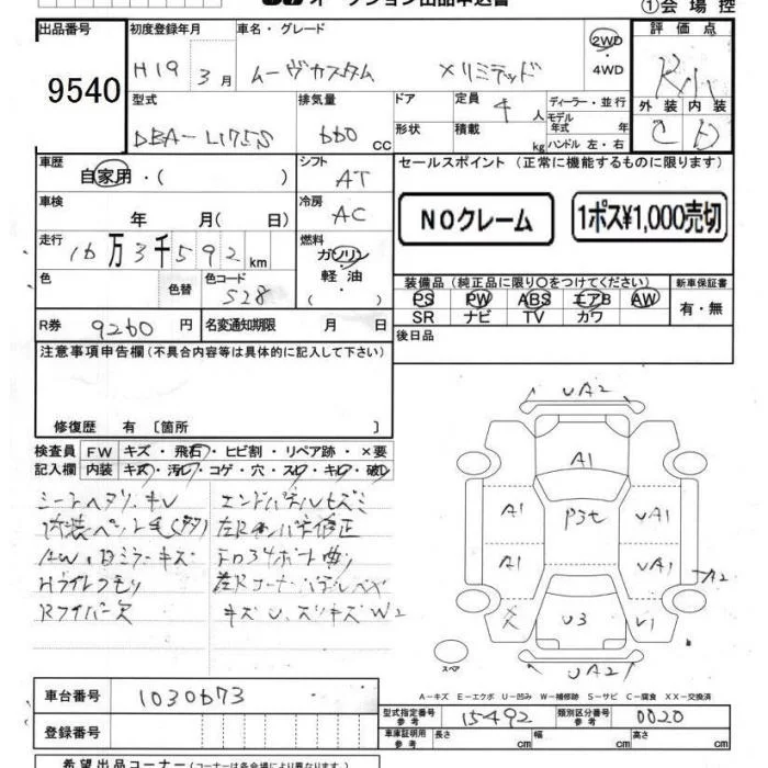 Daihatsu MOVE с аукциона Японии JU Chiba лот № 9540