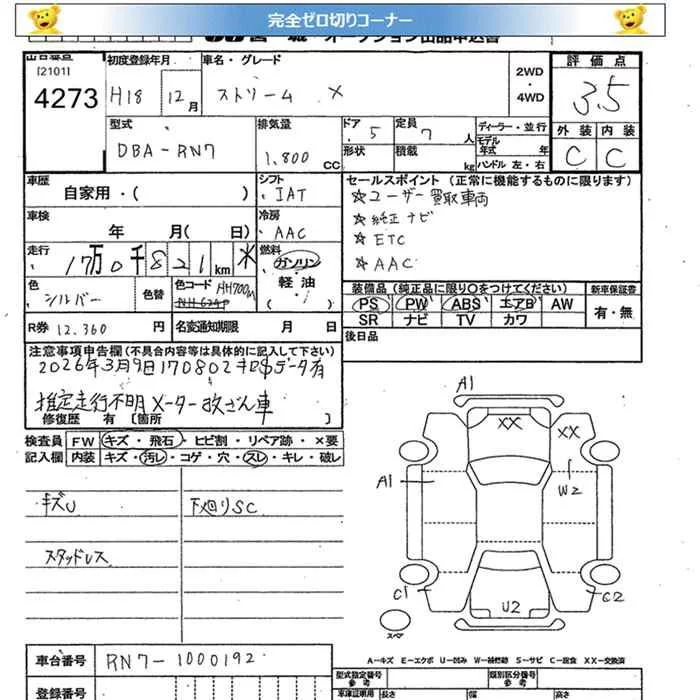 Honda STREAM с аукциона Японии JU Miyagi лот № 4273