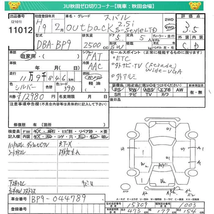Subaru LEGACY OUTBACK с аукциона Японии JU Miyagi лот № 11012