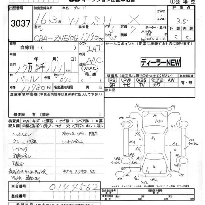Toyota WISH с аукциона Японии JU Chiba лот № 3037