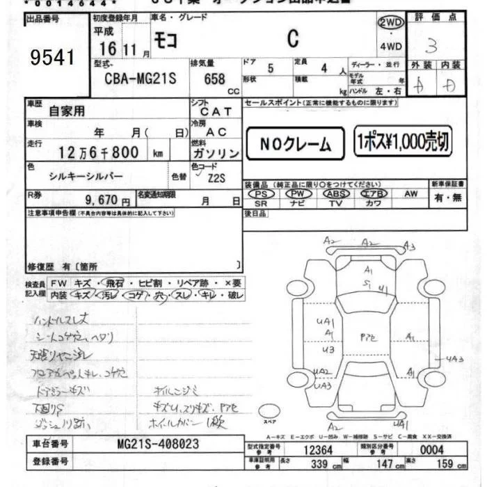 Nissan MOCO с аукциона Японии JU Chiba лот № 9541
