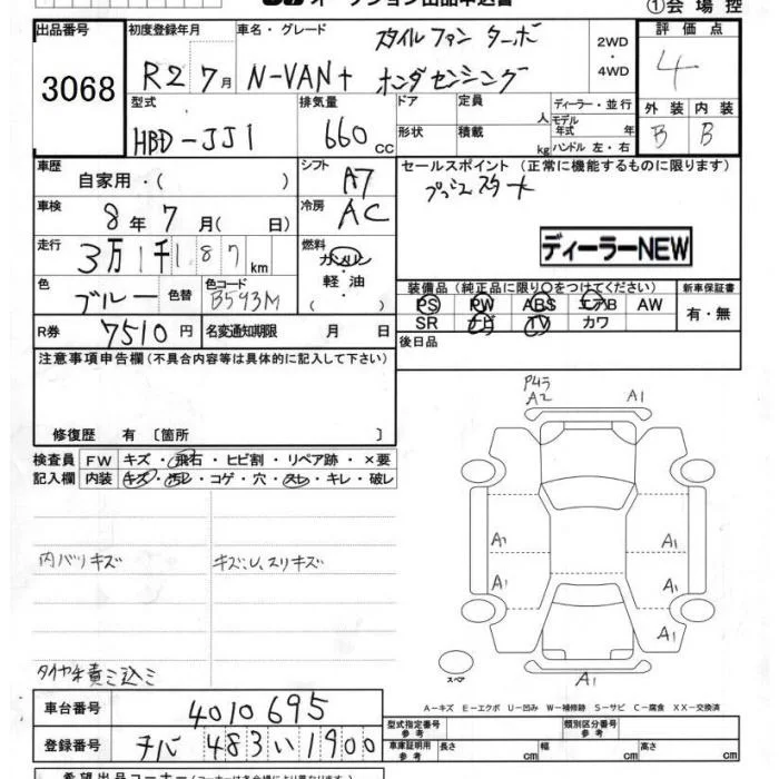 Honda N VAN с аукциона Японии JU Chiba лот № 3068