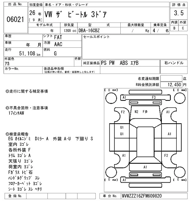 Volkswagen THE BEETLE с аукциона Японии ARAI Sendai лот № 6021