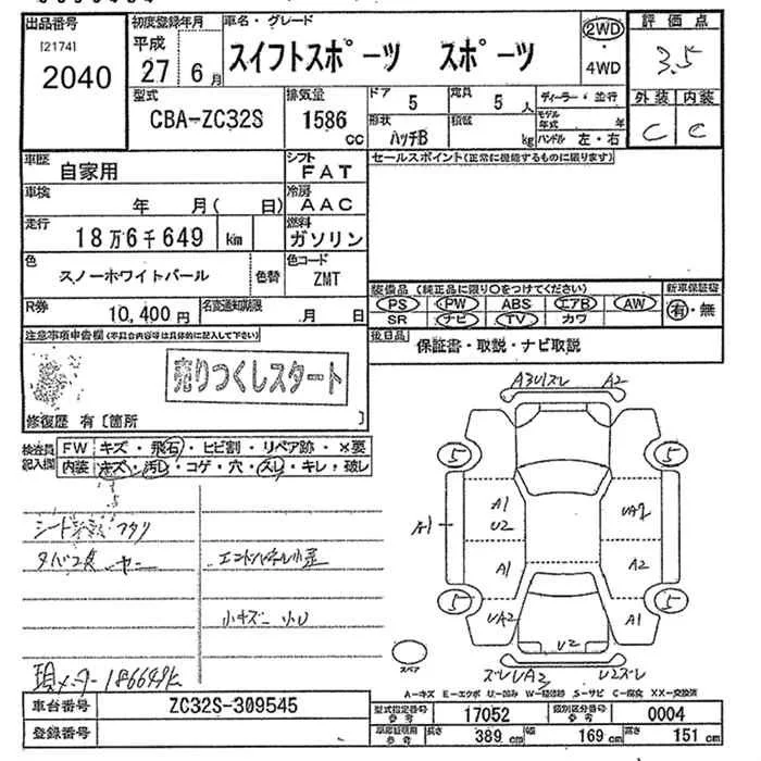 Suzuki SWIFT с аукциона Японии JU Tochigi лот № 2040