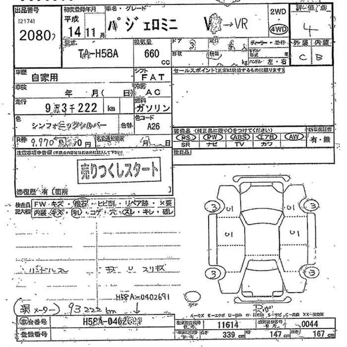 Mitsubishi PAJERO MINI с аукциона Японии JU Tochigi лот № 2080