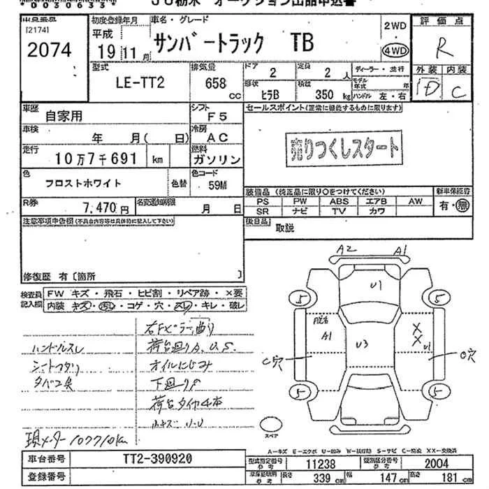 Subaru SAMBAR с аукциона Японии JU Tochigi лот № 2074
