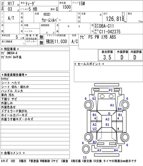 Nissan TIIDA с аукциона Японии NAA Tokyo лот № 8542