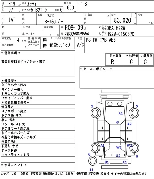 Nissan OTTI с аукциона Японии NAA Tokyo лот № 3308