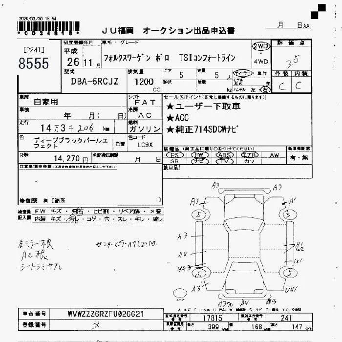 Volkswagen Polo с аукциона Японии JU Fukuoka лот № 8555