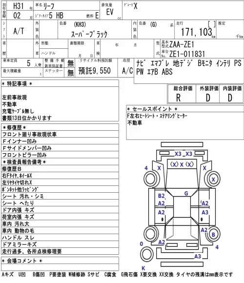 Nissan LEAF с аукциона Японии NAA Tokyo лот № 8015