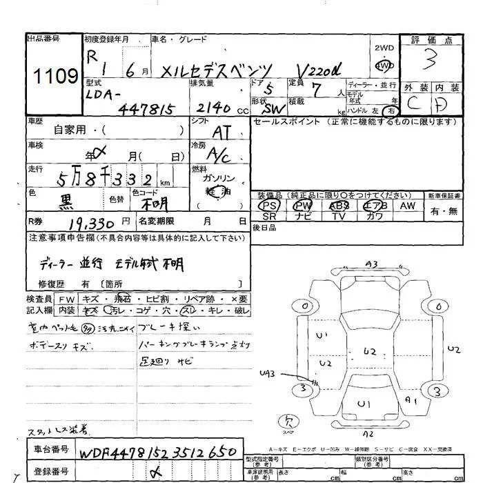 Mercedes-Benz V CLASS с аукциона Японии JU Hokkaido лот № 1109