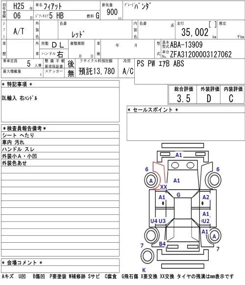 Fiat PANDA с аукциона Японии NAA Tokyo лот № 7003