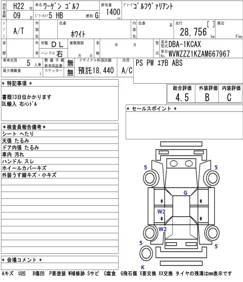 Volkswagen GOLF VARIANT с аукциона Японии NAA Tokyo лот № 8568