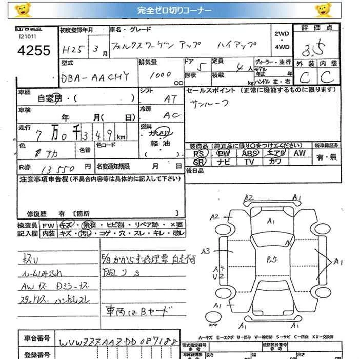 Volkswagen UP с аукциона Японии JU Miyagi лот № 4255