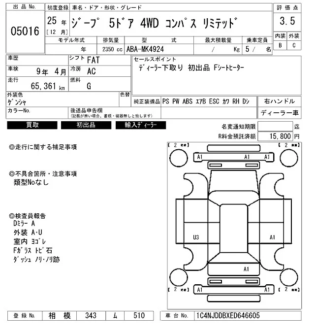 Chrysler JEEP COMPASS с аукциона Японии ARAI Bayside лот № 5016