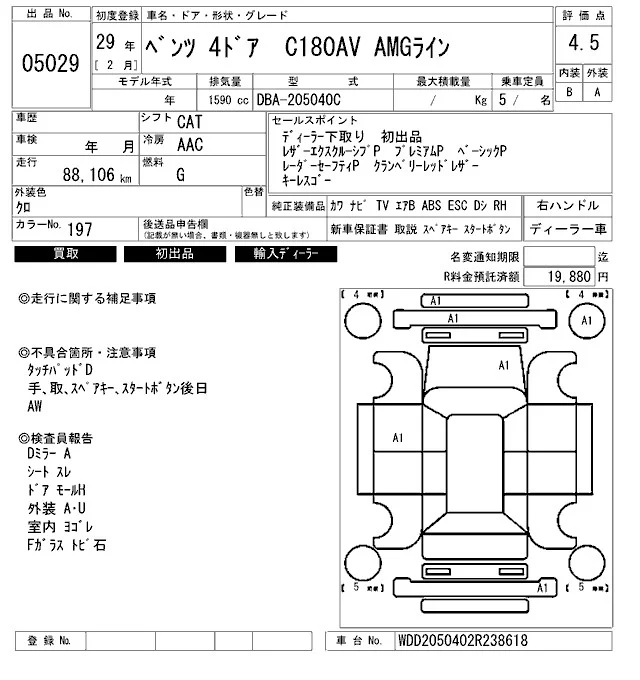 Mercedes-Benz C CLASS с аукциона Японии ARAI Bayside лот № 5029
