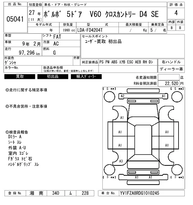 Volvo V60 с аукциона Японии ARAI Bayside лот № 5041