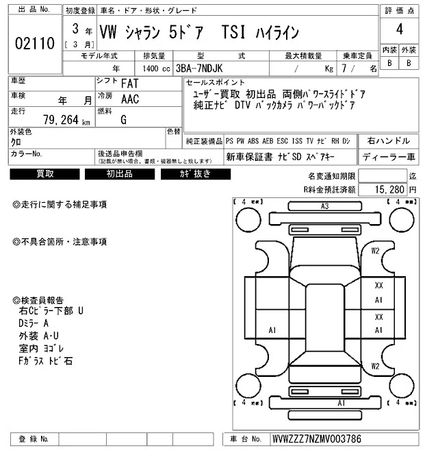 Volkswagen SHARAN с аукциона Японии ARAI Bayside лот № 2110