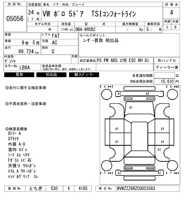 Volkswagen Polo с аукциона Японии ARAI Bayside лот № 5056