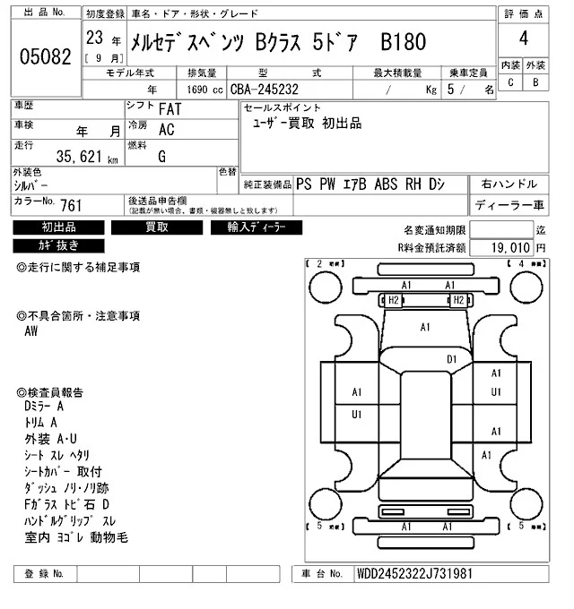 Mercedes-Benz B CLASS с аукциона Японии ARAI Bayside лот № 5082