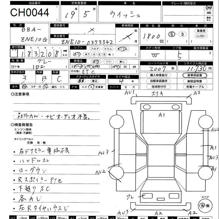 Toyota WISH с аукциона Японии ZERO Chiba лот № 44