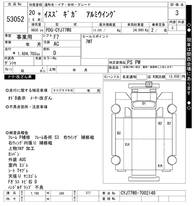 Isuzu GIGA с аукциона Японии ARAI Oyama VT лот № 53052