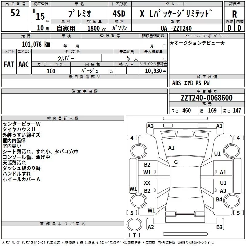Toyota PREMIO с аукциона Японии TAA Hyogo лот № 52