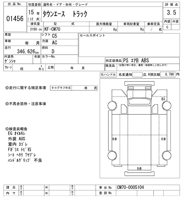 Toyota TOWN ACE TRUCK с аукциона Японии ARAI Oyama VT лот № 1456