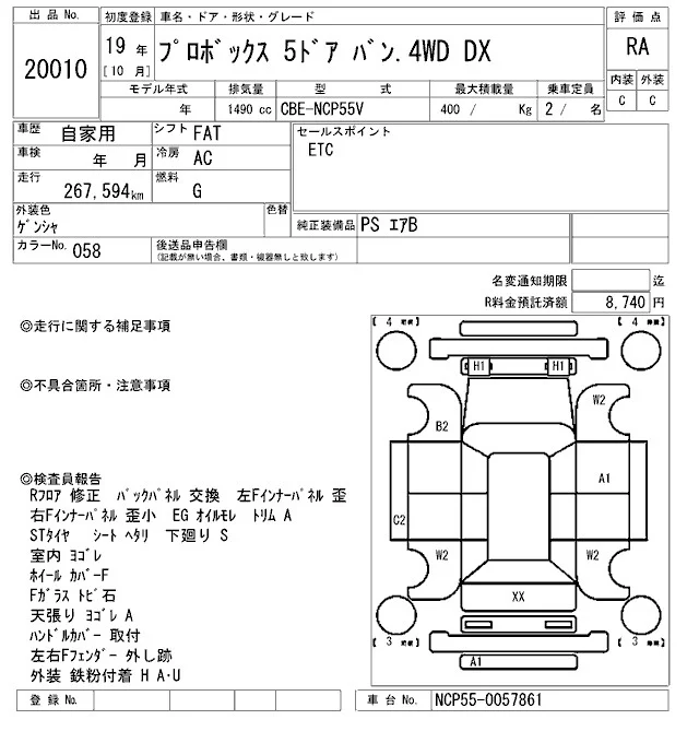 Toyota PROBOX с аукциона Японии ARAI Oyama VT лот № 20010