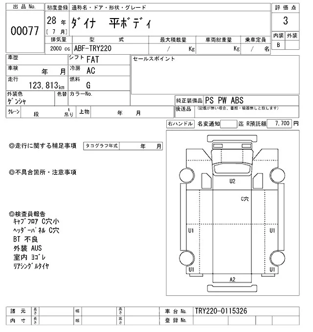 Toyota DYNA с аукциона Японии ARAI Oyama VT лот № 77