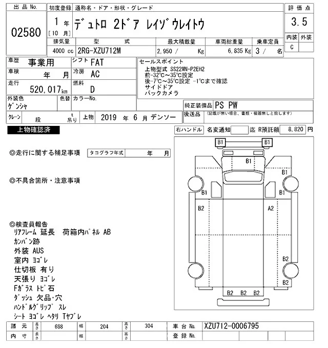 Hino DUTRO с аукциона Японии ARAI Oyama VT лот № 2580