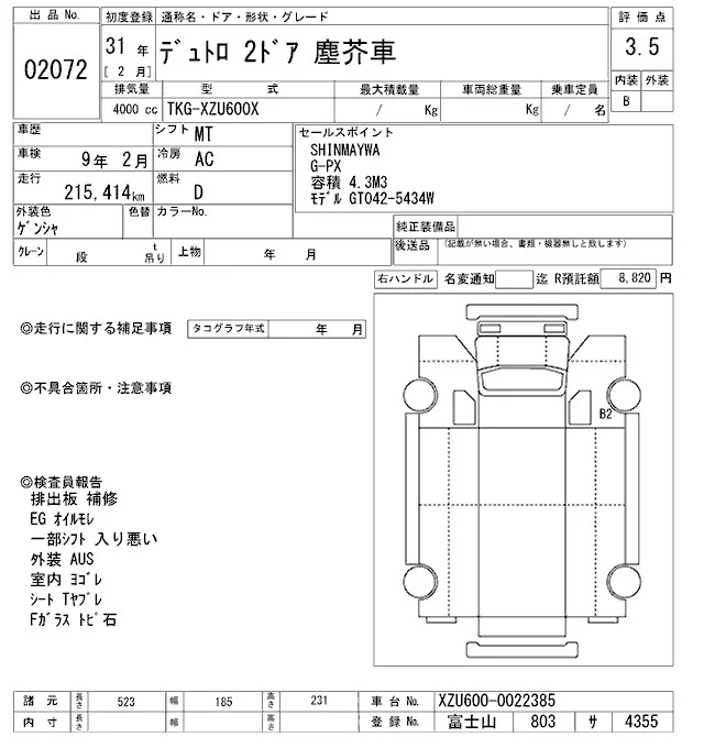 Hino DUTRO с аукциона Японии ARAI Oyama VT лот № 2072