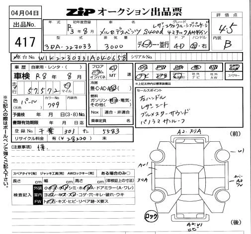 Mercedes-Benz S CLASS с аукциона Японии ZIP Tokyo лот № 417