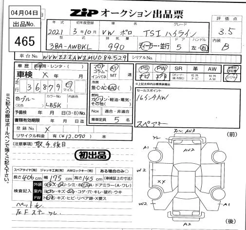 Volkswagen Polo с аукциона Японии ZIP Tokyo лот № 465