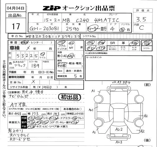 Mercedes-Benz C CLASS с аукциона Японии ZIP Tokyo лот № 17