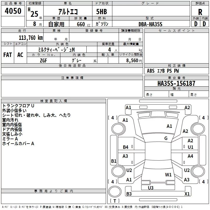 Suzuki ALTO ECO с аукциона Японии TAA Hyogo лот № 4050