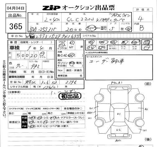 Mercedes-Benz GLC CLASS с аукциона Японии ZIP Tokyo лот № 365